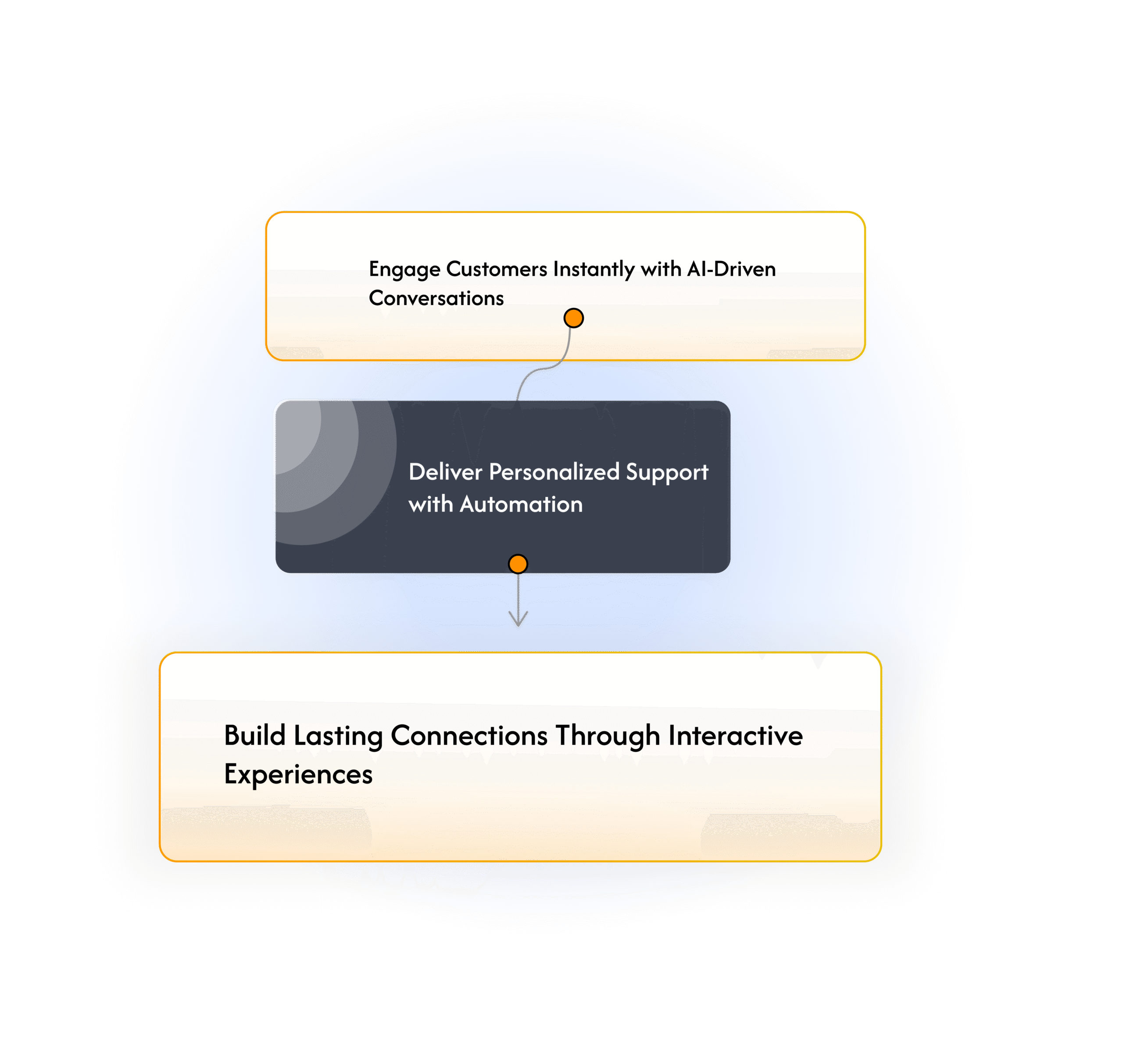 Craft guided, interactive experiences where AI walks users through discovery, content exploration, and seamlessly routes them to the right team.