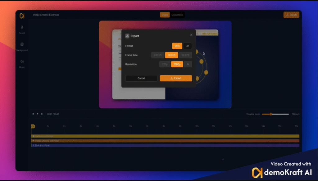 You will see two format options for your video: MP4 and GIF. If you choose GIF, select the size you prefer, then click ‘Export’. The system will prepare the file in the background. When ready, a download link will appear for you to save the file to your device.