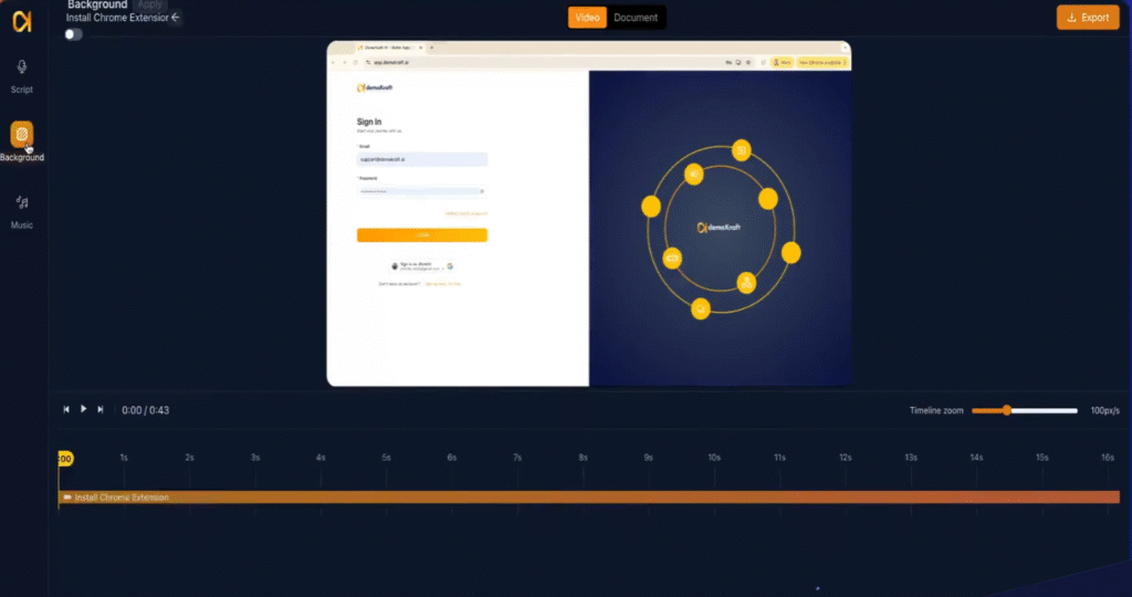 Begin by opening your project in editor mode. From there, navigate directly to the Background section where you can manage and customize your video’s background elements.